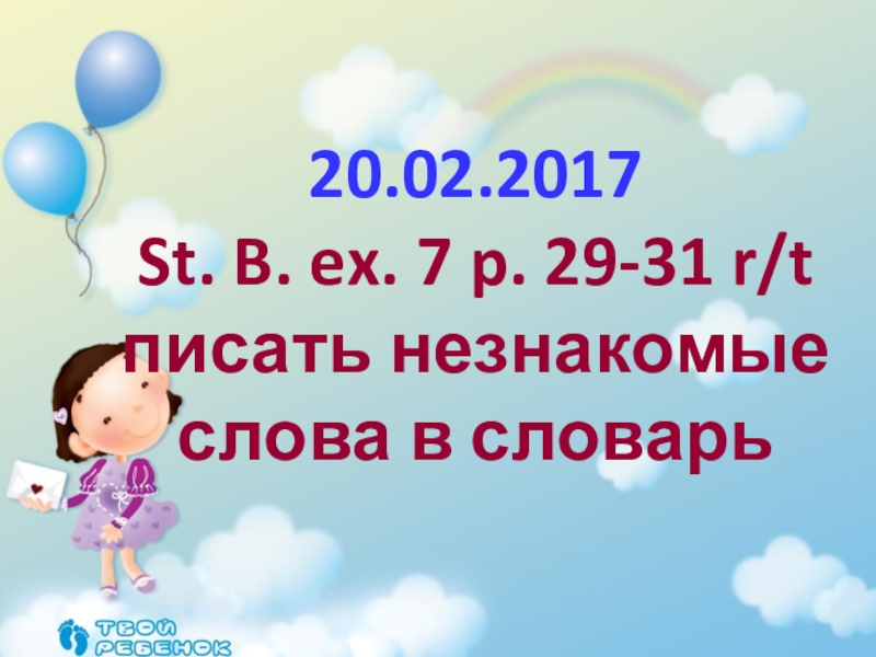 20.02.2017St. B. ex. 7 p. 29-31 r/t писать незнакомые слова в словарь