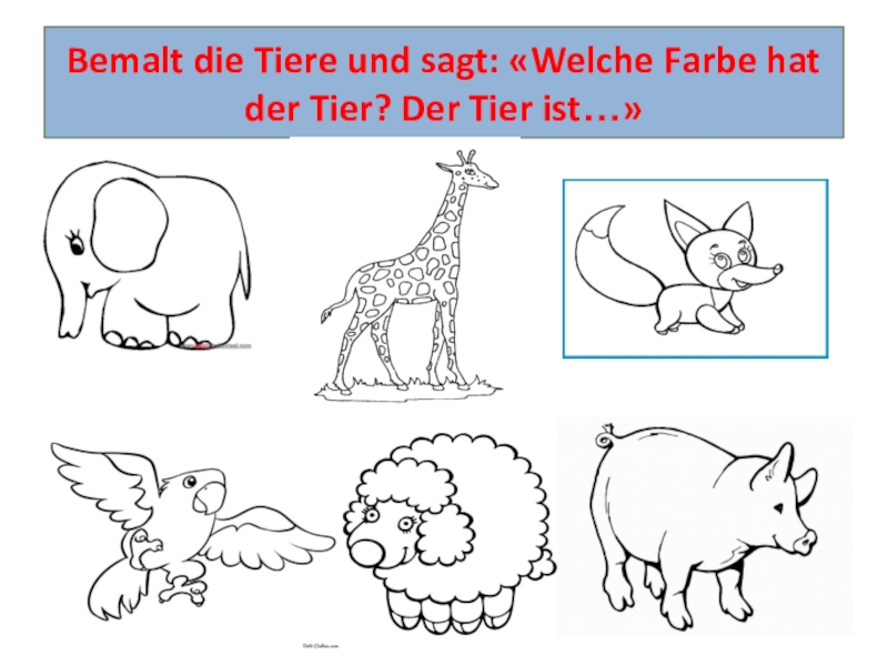 Слайд 11Bemalt die Tiere und sagt: «Welche Farbe hat der Tier? Der