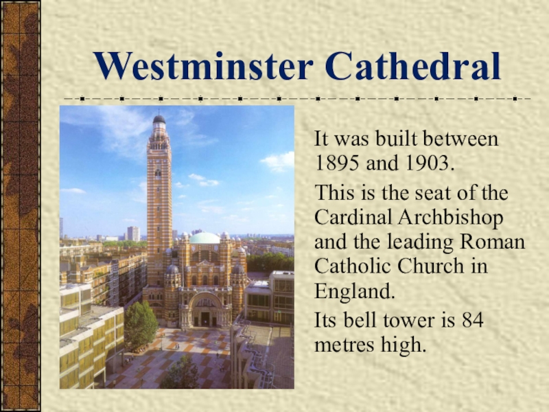 of the Cardinal Archbishop and the leading Roman Catholic Church in England.