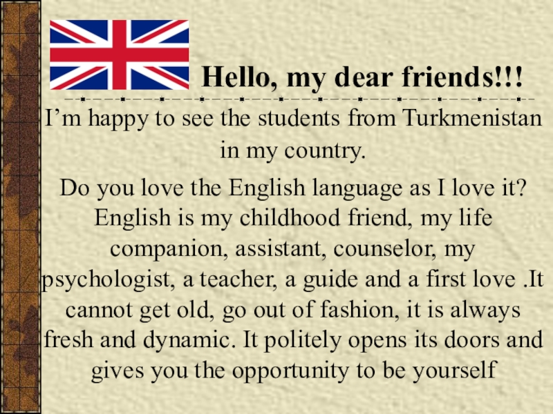 Do you love the English language as I love it? English is my childhood friend, my life companion, assistant, counselor, my psychologist, a teacher, a guide and a first love .It cannot get old, go out of fashion, it is always fresh and dynamic. It politely opens its doors and gives you the opportunity to be yourself