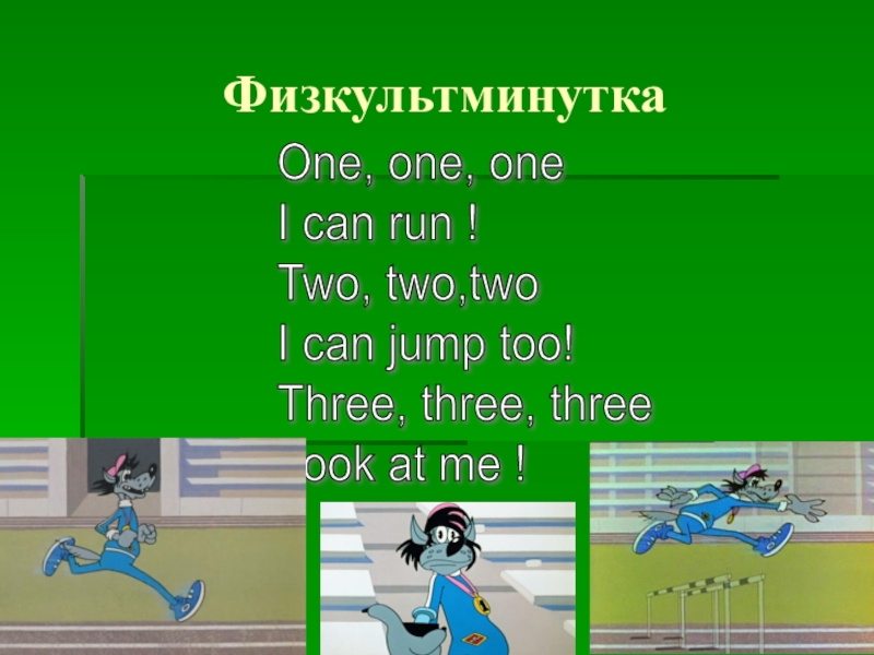 Физкультминутка One, one, one    I can run !   Two, two,two   I can jump