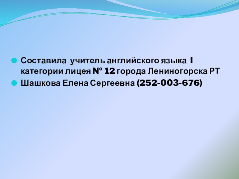 Слайд 17Составила учитель английского языка I категории лицея № 12 города Лениногорска