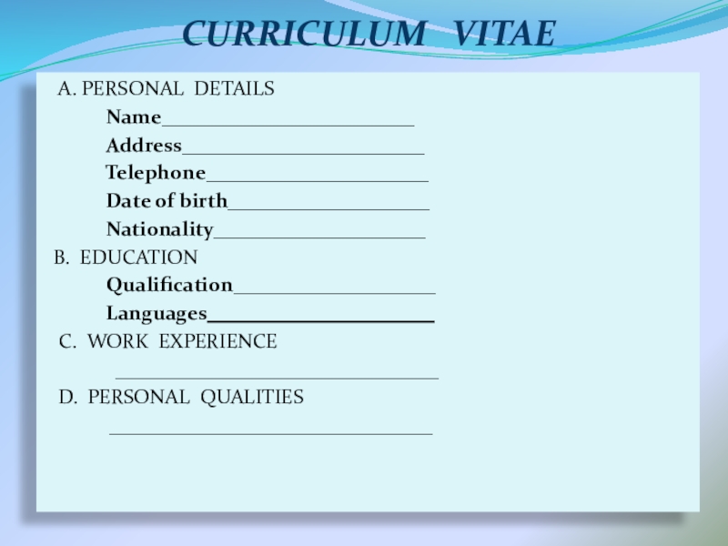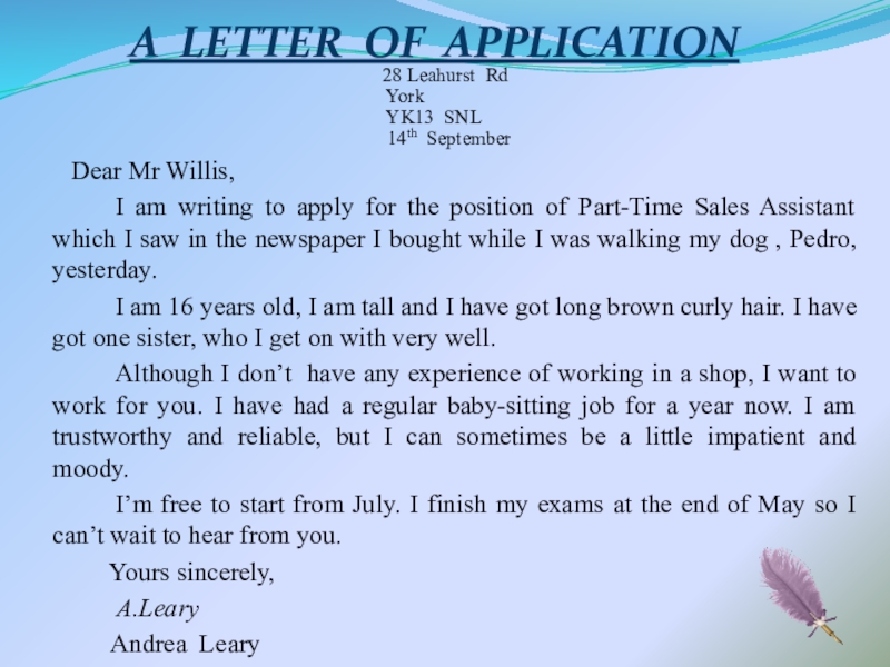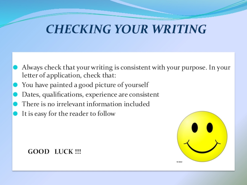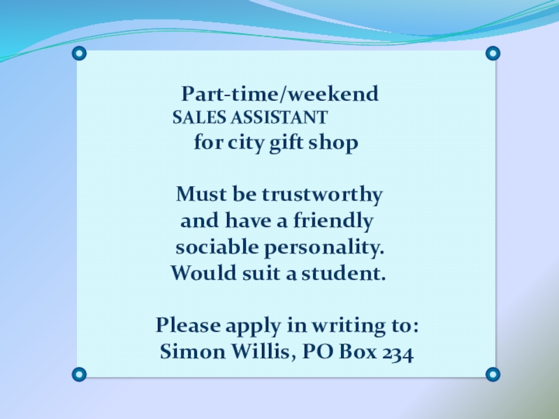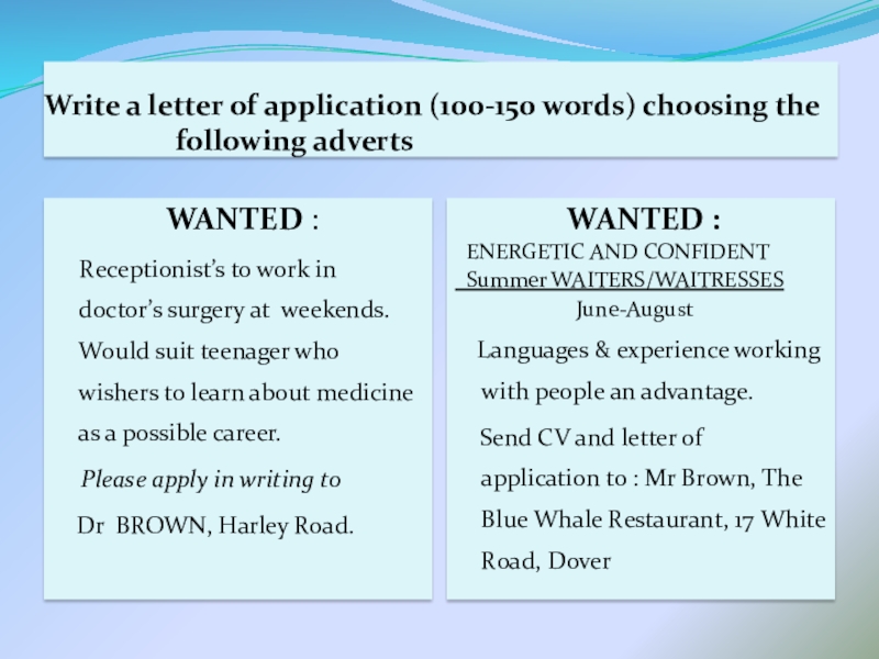 Слайд 15Write a letter of application (100-150 words) choosing the