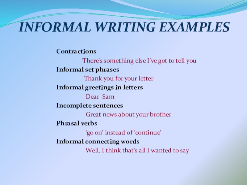 Слайд 3 INFORMAL WRITING EXAMPLES