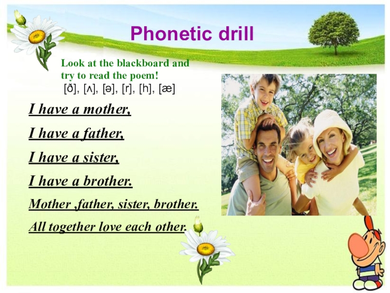 [ð], [ʌ], [ə], [r], [h], [æ]