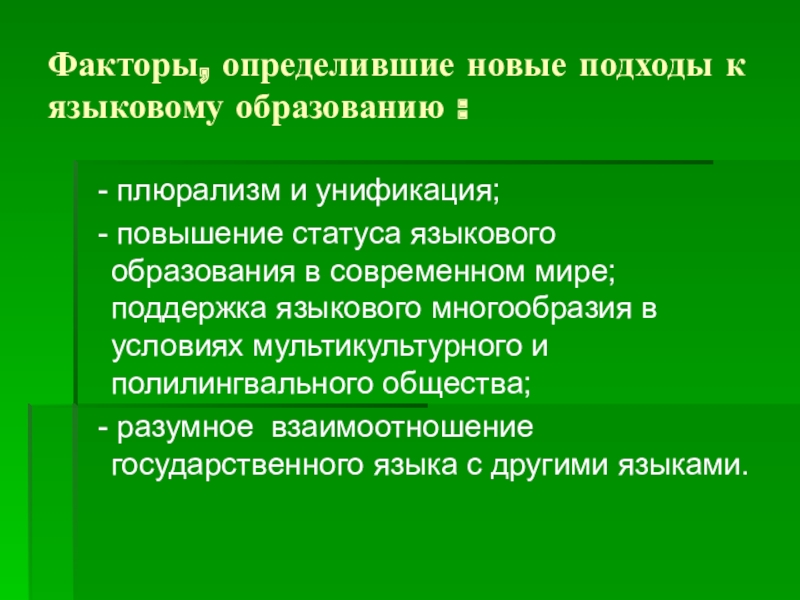 Слайд 18Факторы, определившие новые подходы к языковому образованию :