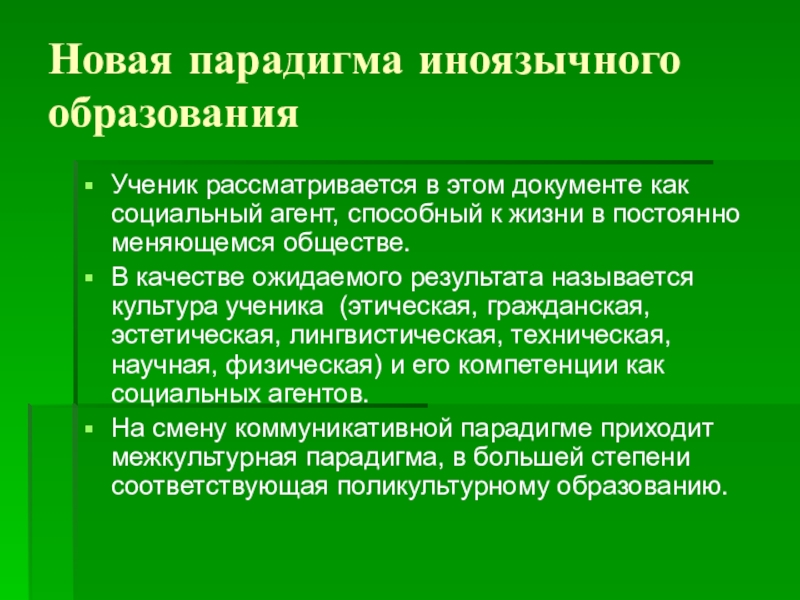 На смену коммуникативной парадигме приходит межкультурная парадигма, в большей степени соответствующая поликультурному образованию.