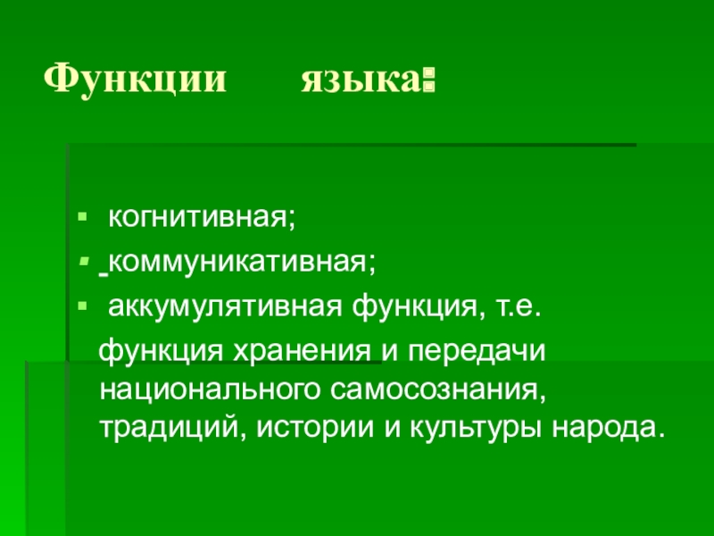 функция хранения и передачи национального самосознания, традиций, истории и культуры народа.