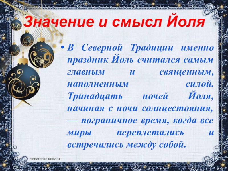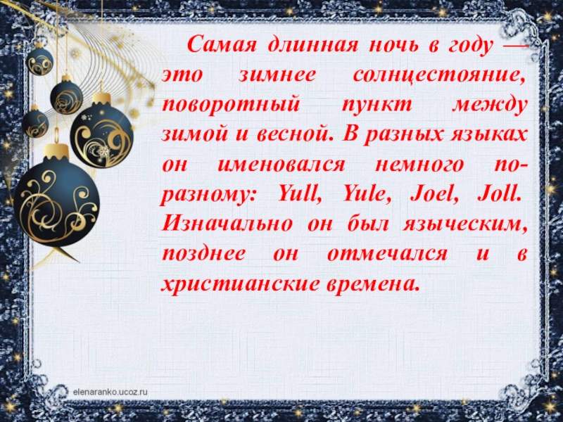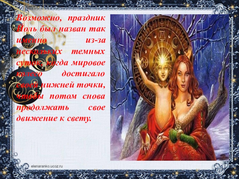 Слайд 8Возможно, праздник Йоль был назван так именно из-за нескольких темных суток,