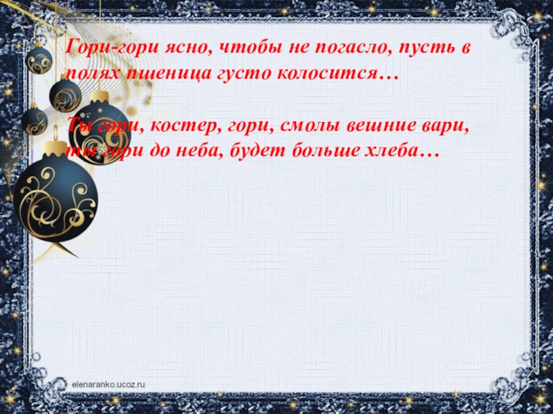 Слайд 36Гори-гори ясно, чтобы не погасло, пусть в полях пшеница густо колосится…