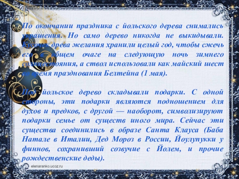 Слайд 32По окончании праздника с йольского дерева снимались украшения. Но само дерево