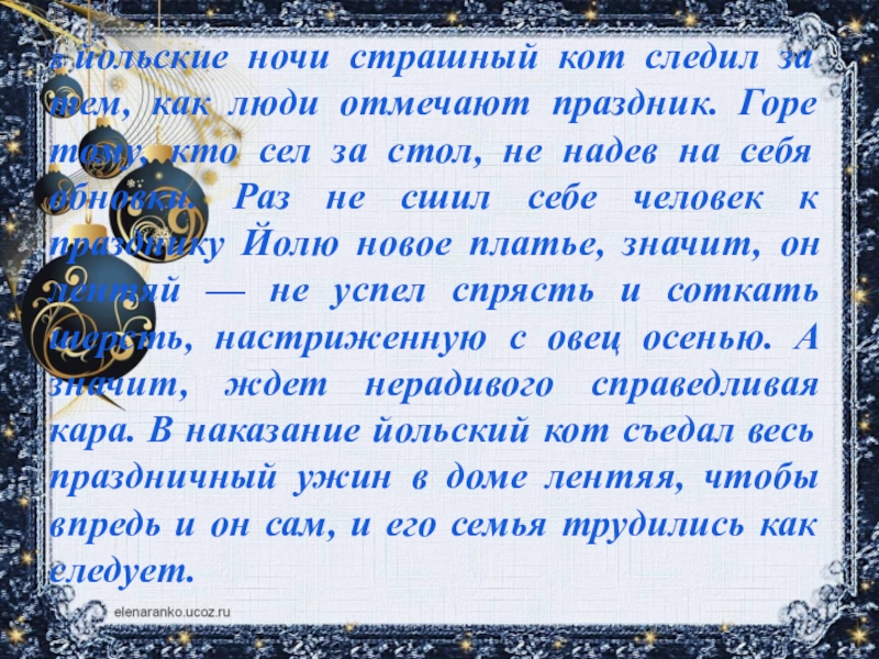 Слайд 41В йольские ночи страшный кот следил за тем, как люди отмечают