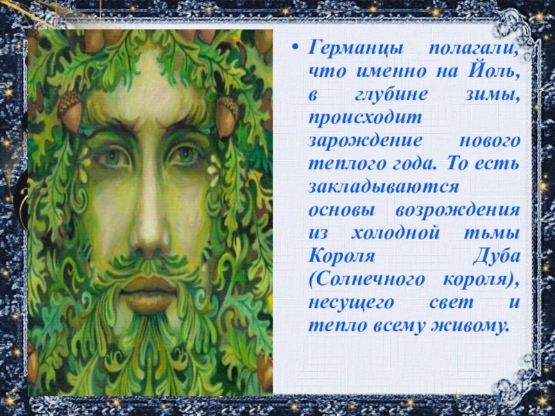 Слайд 14Германцы полагали, что именно на Йоль, в глубине зимы, происходит зарождение