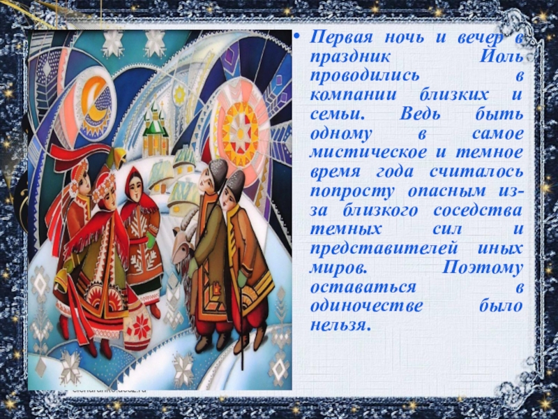 Слайд 20Первая ночь и вечер в праздник Йоль проводились в компании близких
