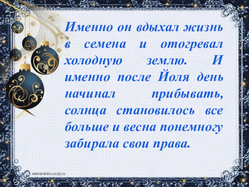 Слайд 24Именно он вдыхал жизнь в семена и отогревал холодную землю. И
