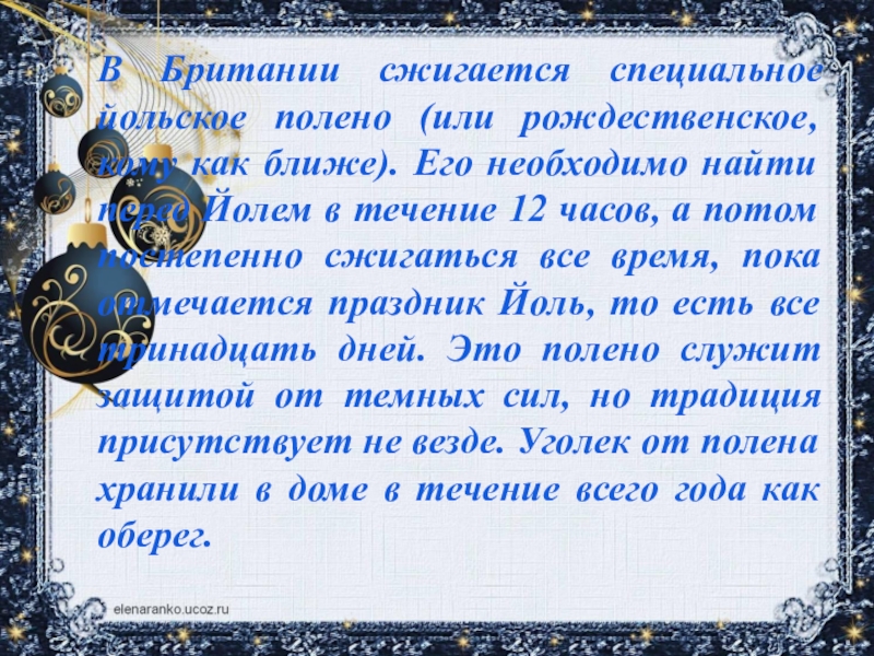 Слайд 34В Британии сжигается специальное йольское полено (или рождественское, кому как ближе).