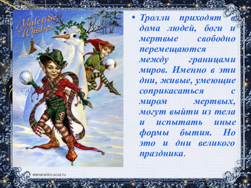 Слайд 13Тролли приходят в дома людей, боги и мертвые свободно перемещаются между
