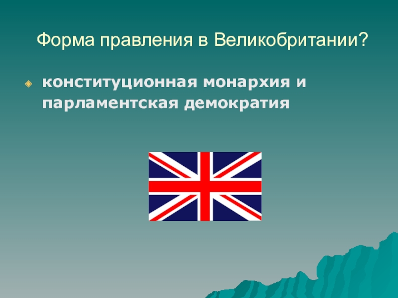 Форма правления в Великобритании? конституционная монархия и парламентская демократия
