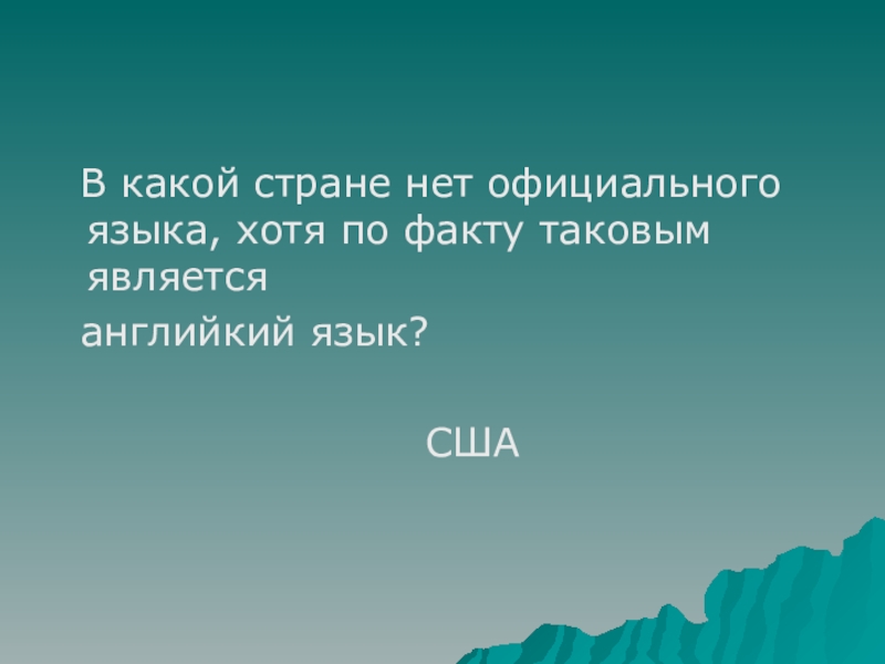 Слайд 9 В какой стране нет официального языка, хотя по факту