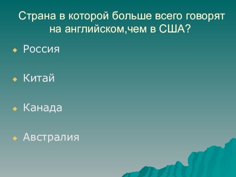 Страна в которой больше всего говорят на английском,чем в США?РоссияКитайКанадаАвстралия