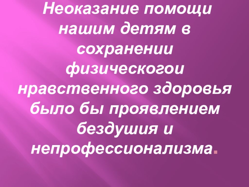 Слайд 3 Неоказание помощи нашим детям в сохранении физическогои нравственного здоровья было