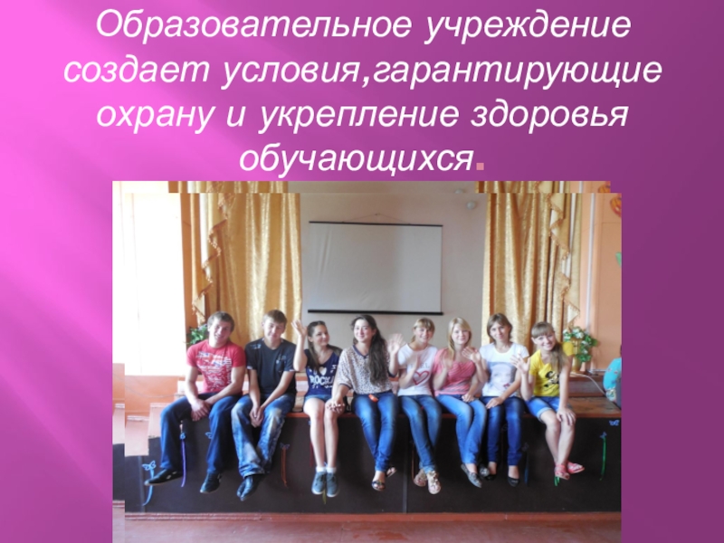 Слайд 4Образовательное учреждение создает условия,гарантирующие охрану и укрепление здоровья обучающихся.