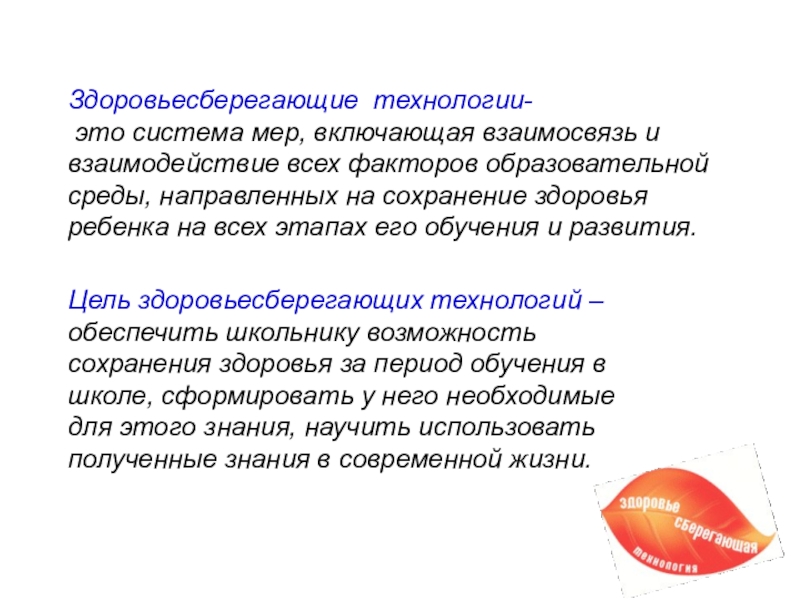 Цель здоровьесберегающих технологий –