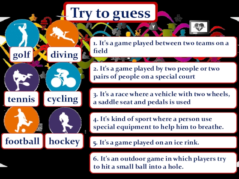 4. It’s kind of sport where a person use special equipment to help him to breathe.