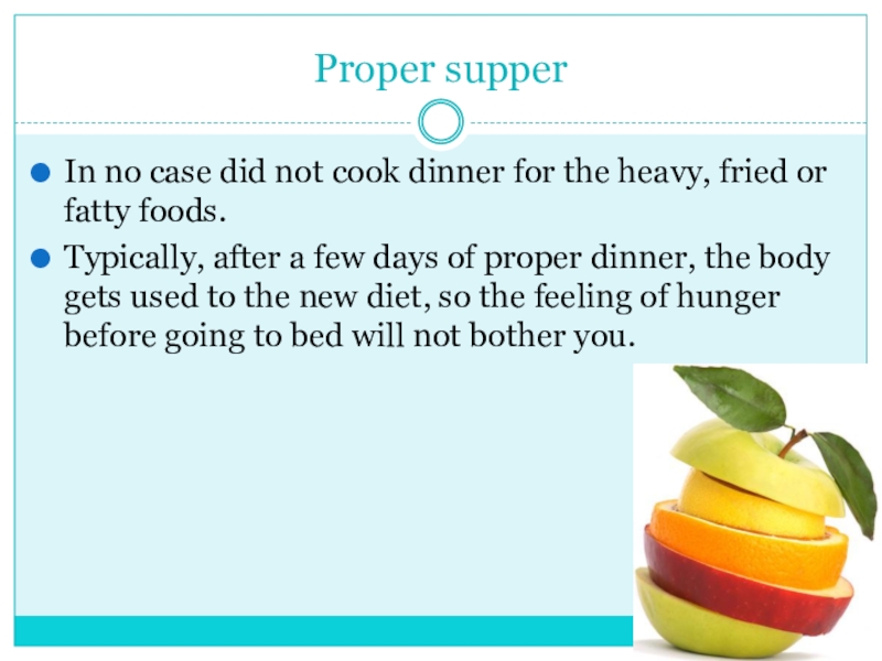 Typically, after a few days of proper dinner, the body gets used to the new diet, so the feeling of hunger before going to bed will not bother you.