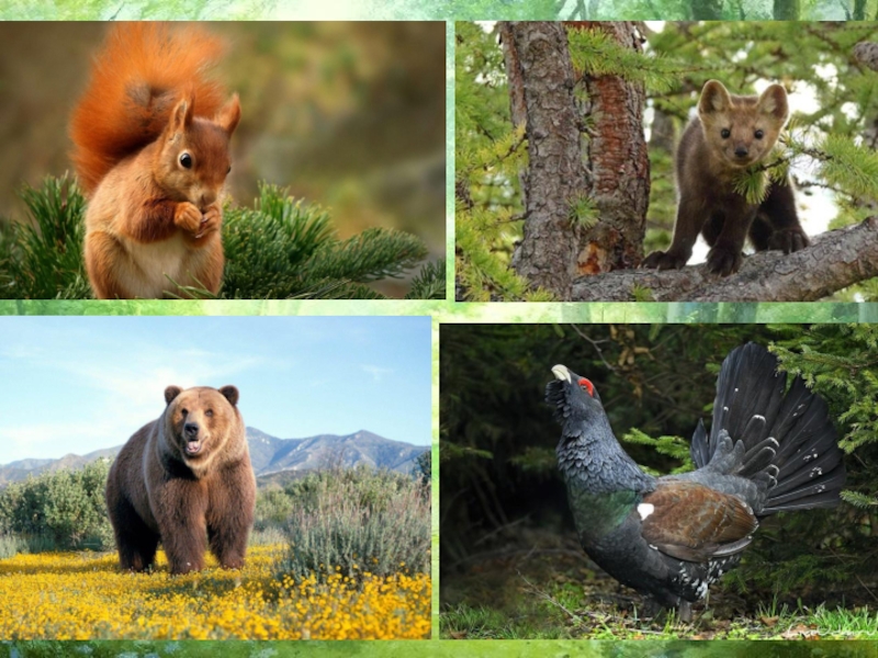 here are warm enough. Animals of the taiga are sables, capercaillies, grouses, mooses, squirrels, brown bears, wolverines, lynxes.