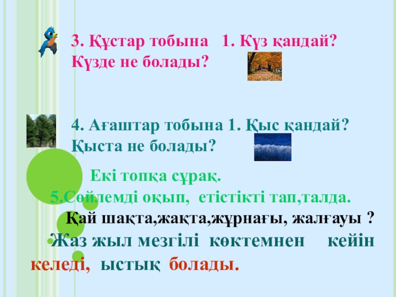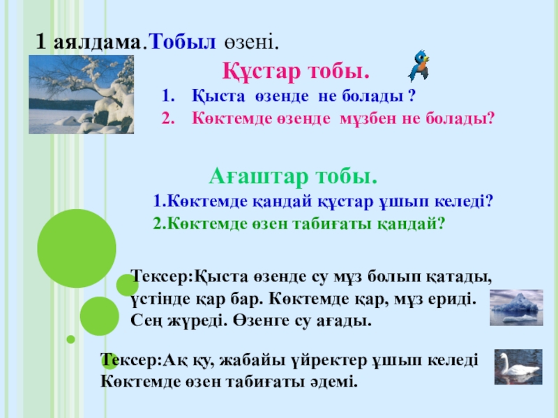 1.Көктемде қандай құстар ұшып келеді?