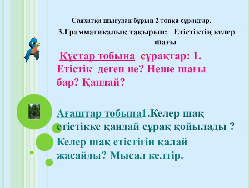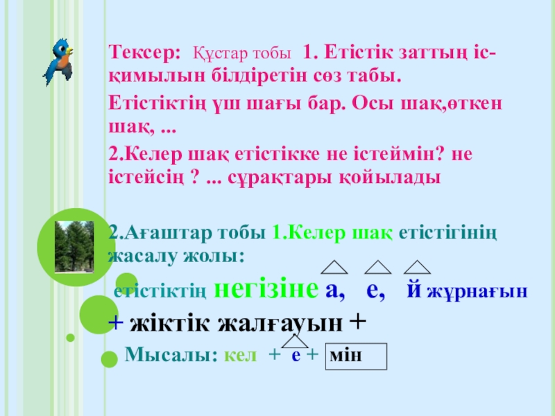 5.Сөйлемді оқып, етістікті тап,талда.