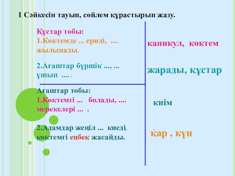1.Көктемде қалада не болады?