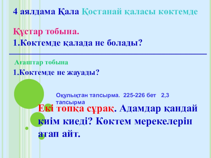 Оқулықтан тапсырма. 225-226 бет 2,3 тапсырма