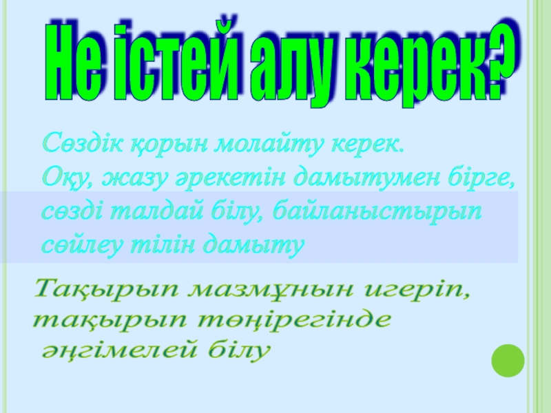 Сөйлеу әрекетіне жетілдіре отырып тақырып мазмұның игеру.