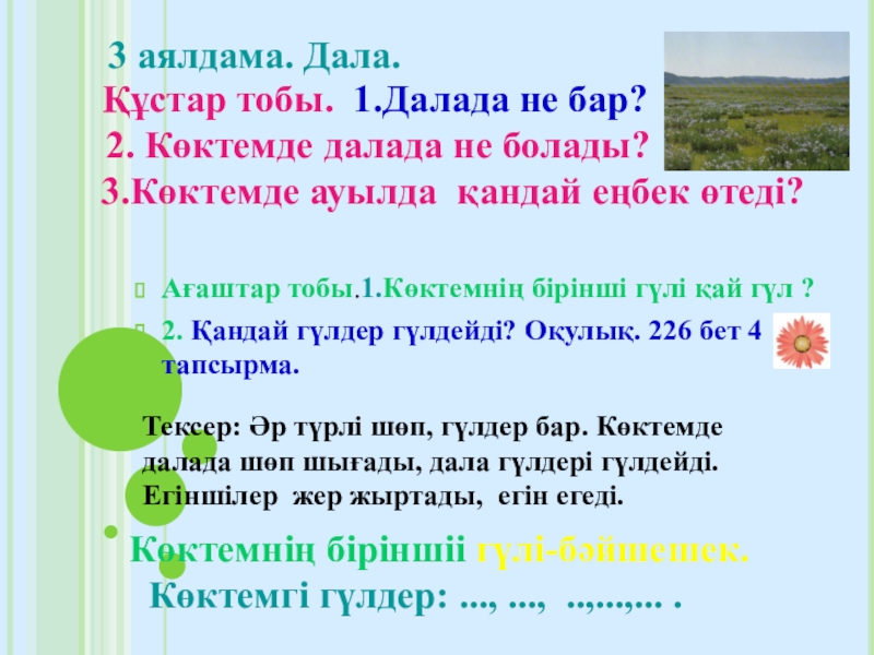 Көктемгі гүлдер: ..., ..., ..,...,... .