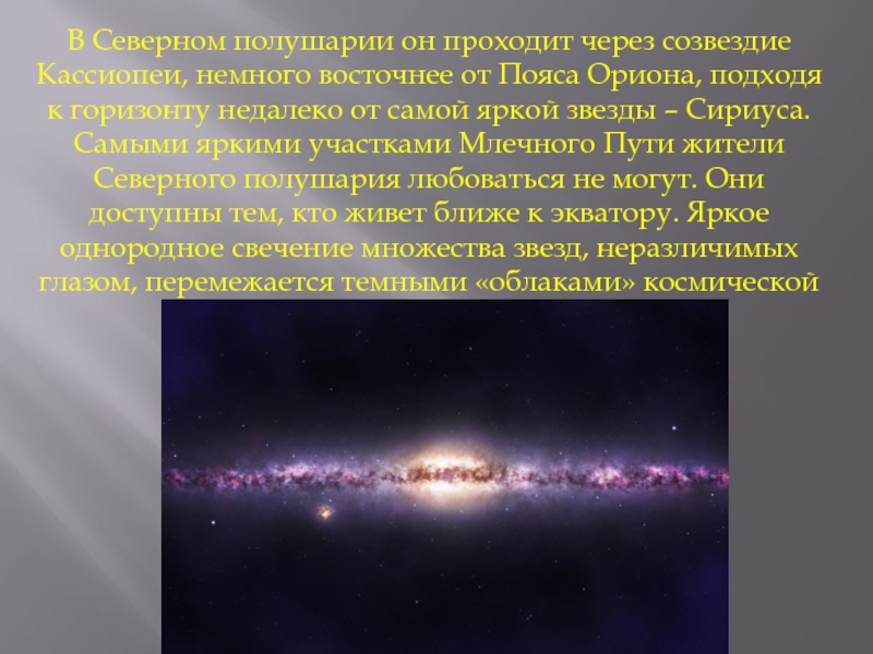 Слайд 6В Северном полушарии он проходит через созвездие Кассиопеи, немного восточнее от