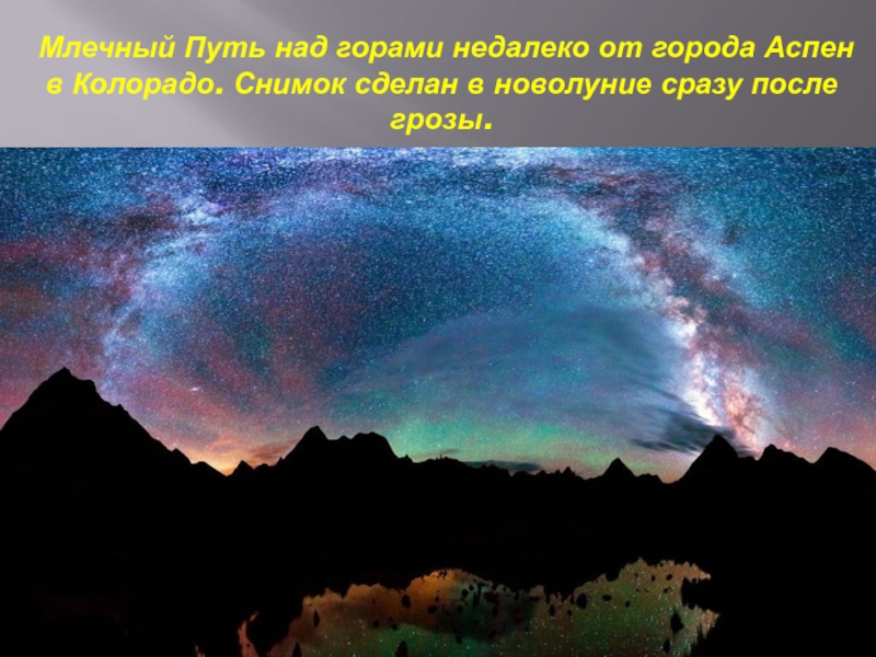 Слайд 28 Млечный Путь над горами недалеко от города Аспен в Колорадо. Снимок