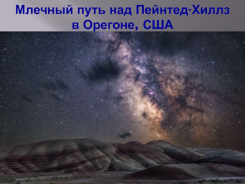 Слайд 18Млечный путь над Пейнтед-Хиллз в Орегоне, США