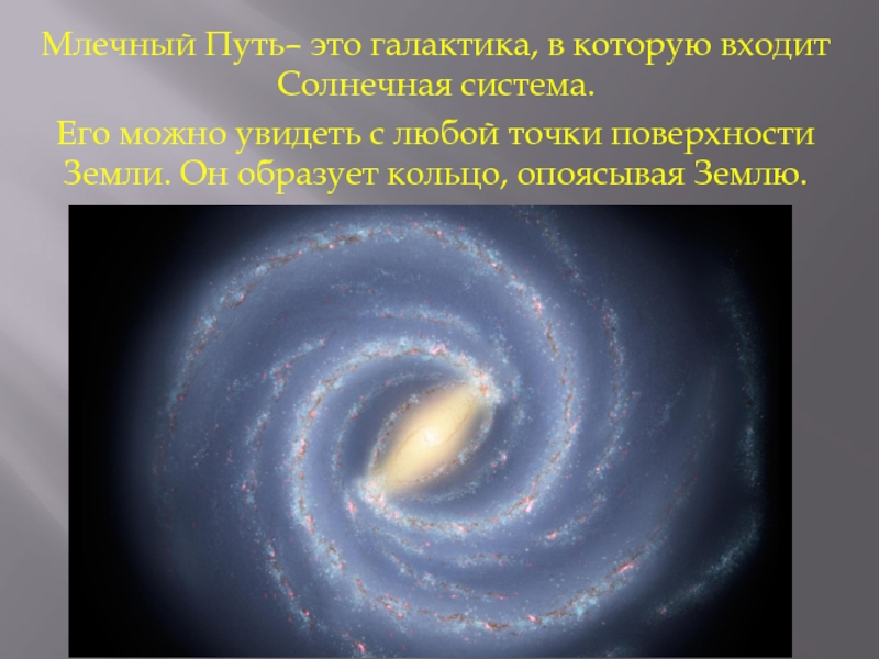 Слайд 5Млечный Путь– это галактика, в которую входит Солнечная система.