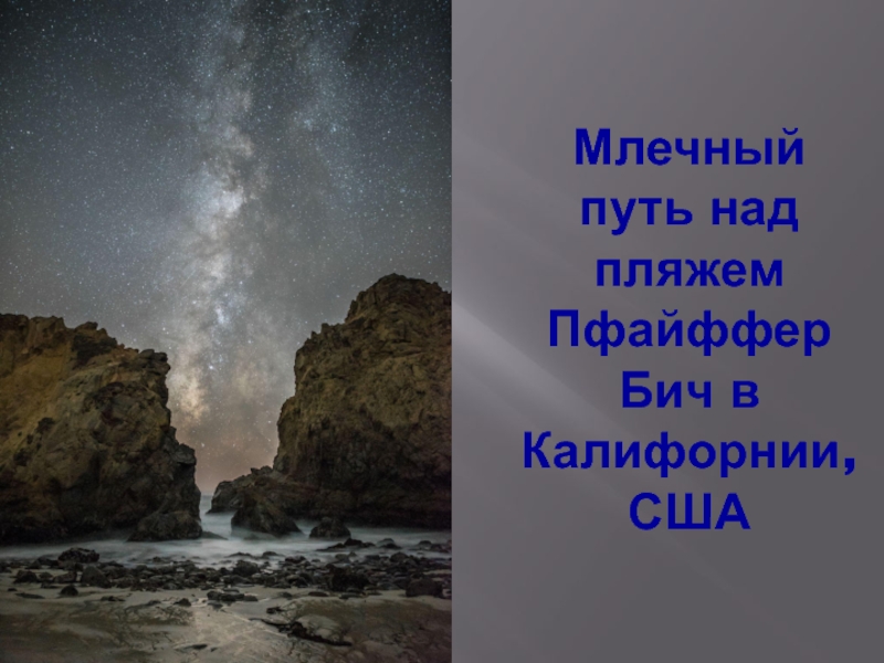 Слайд 21Млечный путь над пляжем Пфайффер Бич в Калифорнии, США