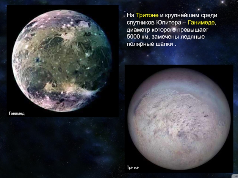 Слайд 21На Тритоне и крупнейшем среди спутников Юпитера – Ганимеде, диаметр которого