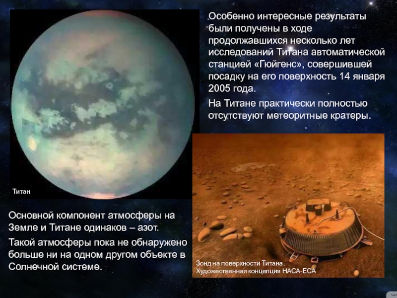 Титана автоматической станцией «Гюйгенс», совершившей посадку на его поверхность 14 января 2005 года.