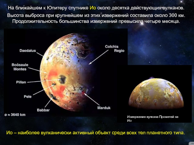 Слайд 17На ближайшем к Юпитеру спутнике Ио около десятка действующих вулканов.