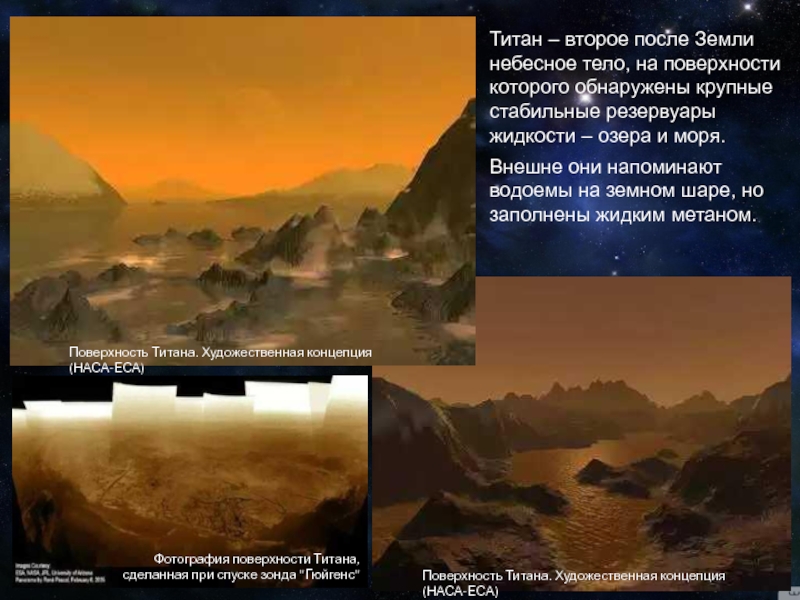 Слайд 23Титан – второе после Земли небесное тело, на поверхности которого обнаружены