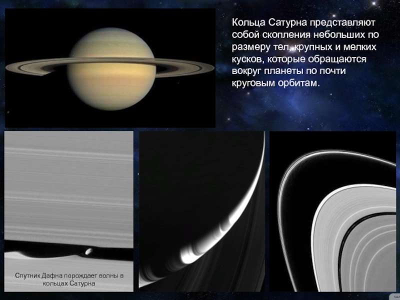 Слайд 25Кольца Сатурна представляют собой скопления небольших по размеру тел, крупных и