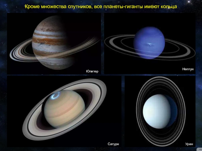 Слайд 24Кроме множества спутников, все планеты-гиганты имеют кольца