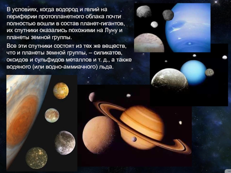полностью вошли в состав планет-гигантов, их спутники оказались похожими на Луну и планеты земной группы.