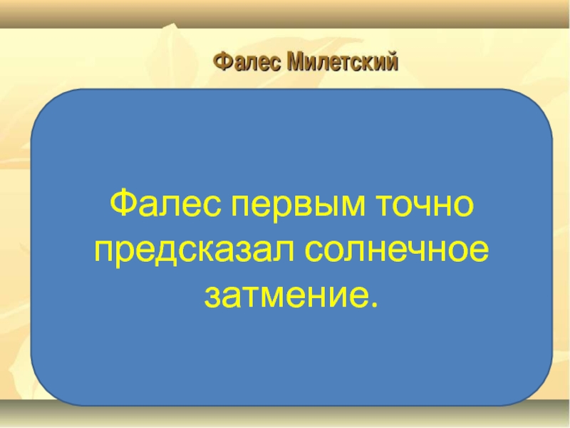 Фалес первым точно предсказал солнечное затмение.
