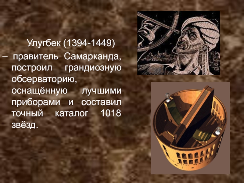 – правитель Самарканда, построил грандиозную обсерваторию, оснащённую лучшими приборами